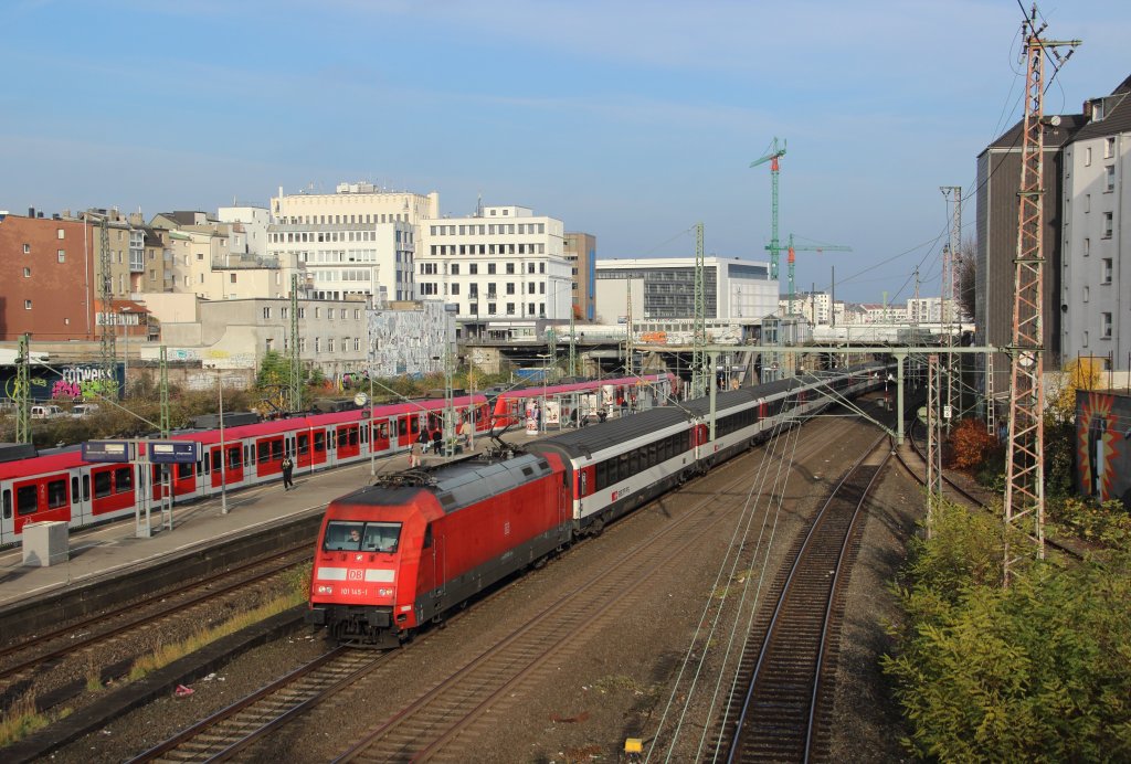 101 145-1 mit dem EC 101 (Hamburg-Altona - Chur) in Düsseldorf-Werhahn am 17.11.2012