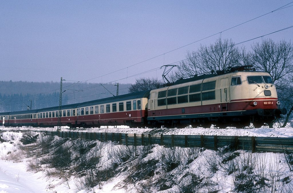 Am 27.03.1991 zählte der rote Elektrotriebzug 348 noch zu den Neubaufahrzeugen