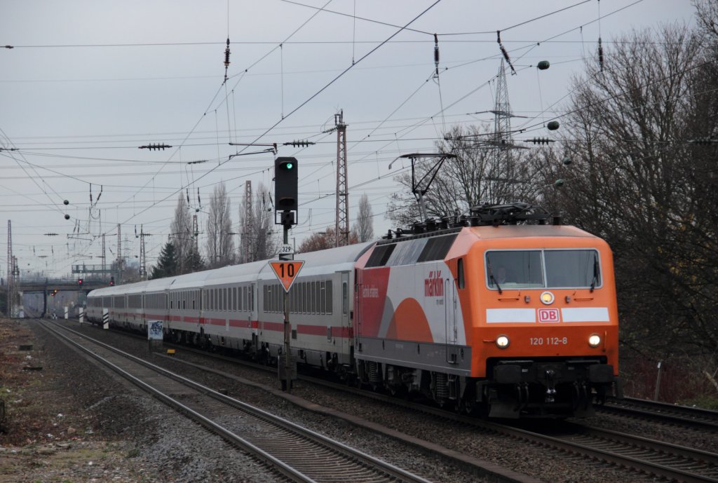 120 112-8 mit dem IC 1911 (Dortmund Hbf - Stuttgart Hbf) in Düsseldorf-Eller-Süd am 30.11.2012