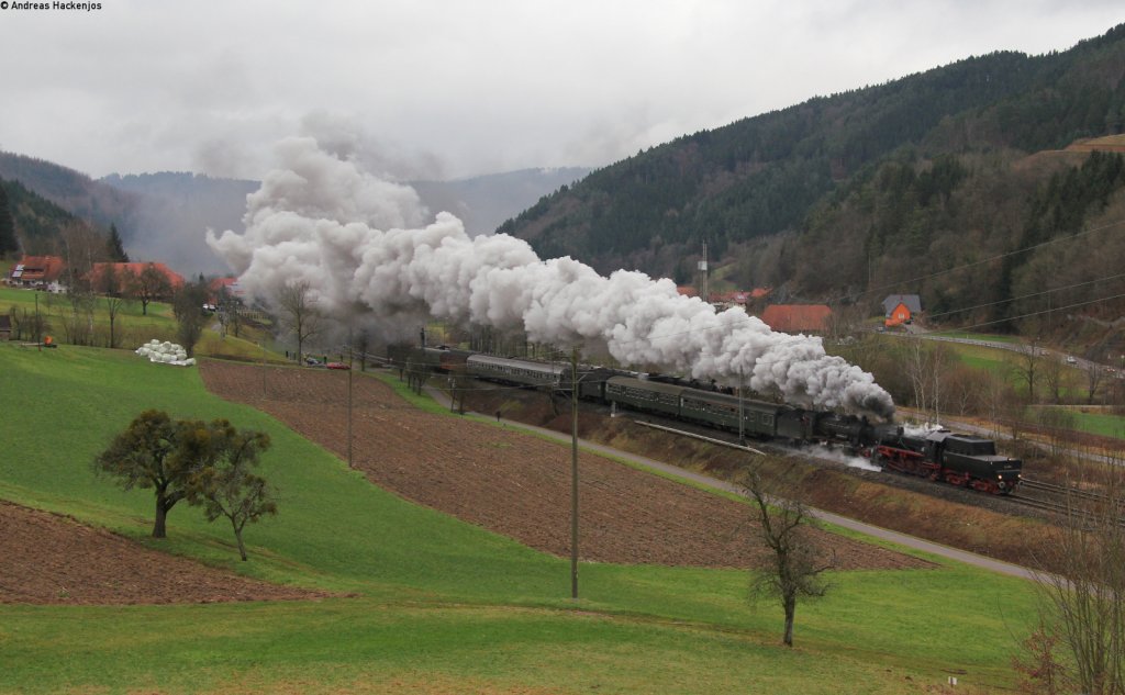 52 7596 und 2455 Posen mit dem DPE 75907 (Hausach-Tübingen Hbf) dahinter 01 1066 bei Gutach 6.1.13