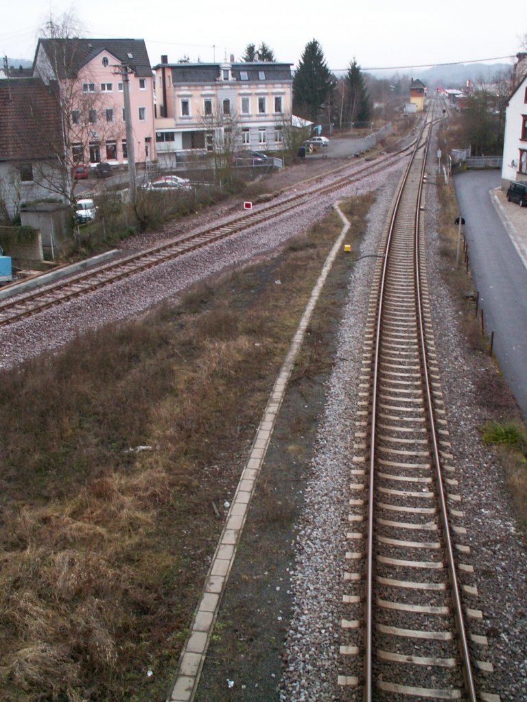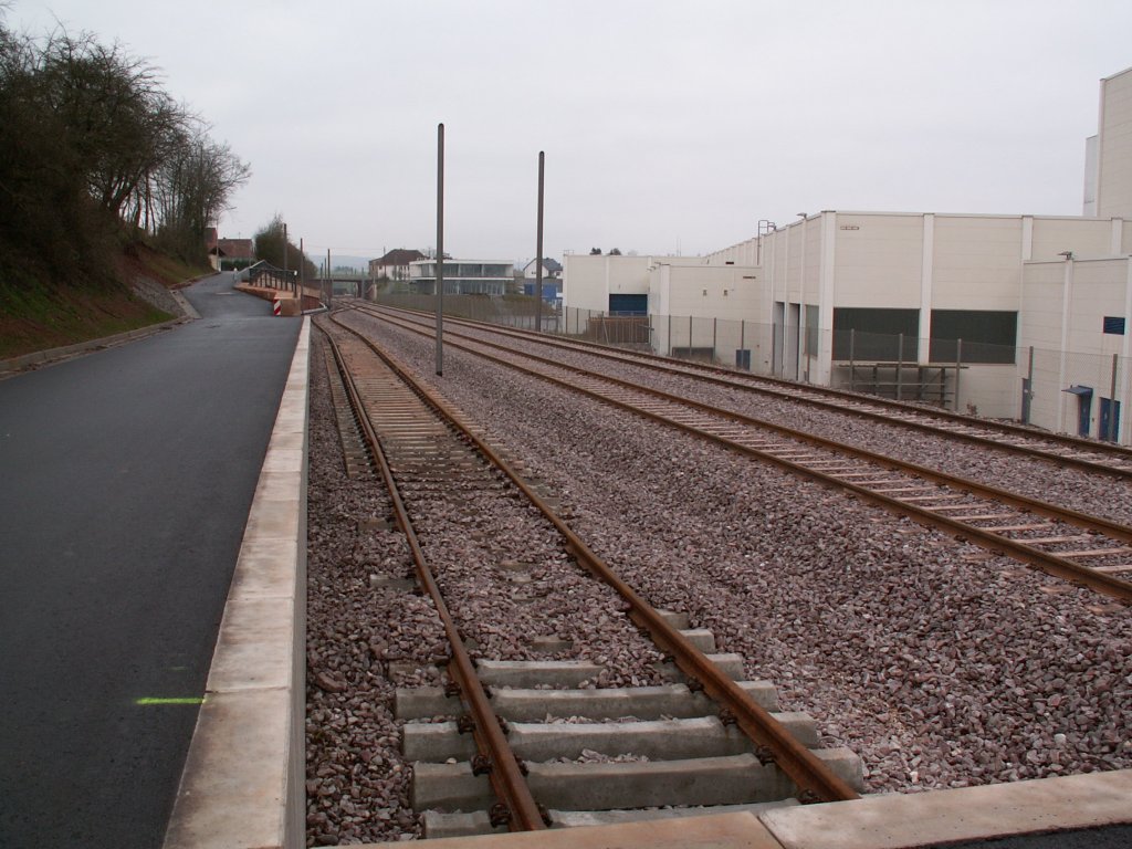 Zweigleisiger Abschnitt und Abstellgleis in Eiweiler in höhe Fa Glunz.