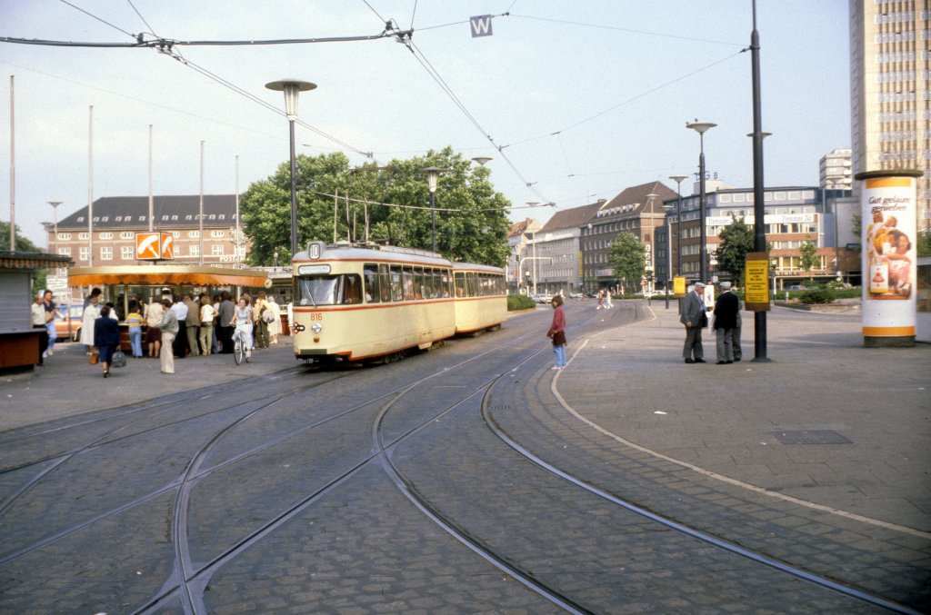 Bremen BSAG SL 10 (Grossraumtriebwagen 816) Bahnhofsplatz / Hbf am 23. Juni 1981.