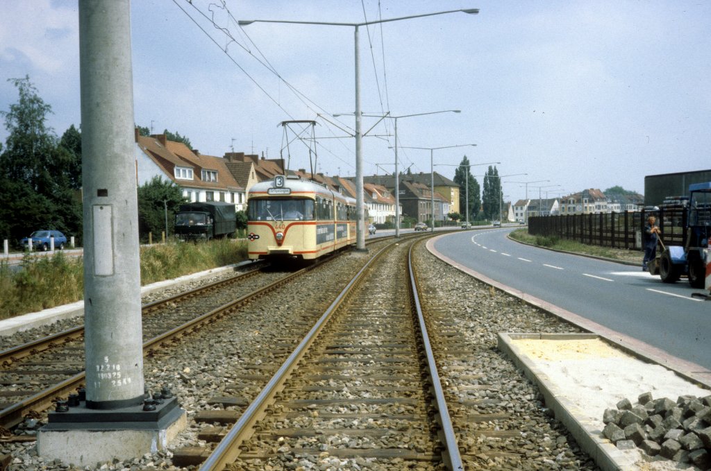 Bremen BSAG SL 3 (Hansa-GT4 440) Werftstrasse am 23. Juni 1981.