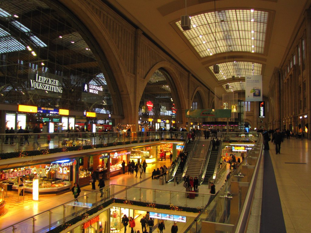Ein Teil der dreiebigen Bahnhofshalle vom Leipziger Hbf am 05.01.2013.