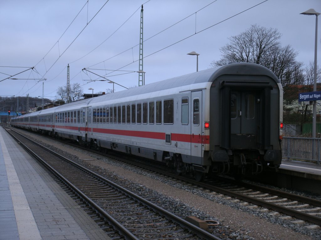Ohne Steuerwagen kam,am 03.Januar 2013,IC 2212 von Koblenz nach Binz.Hier beim Halt in Bergen/Rügen.