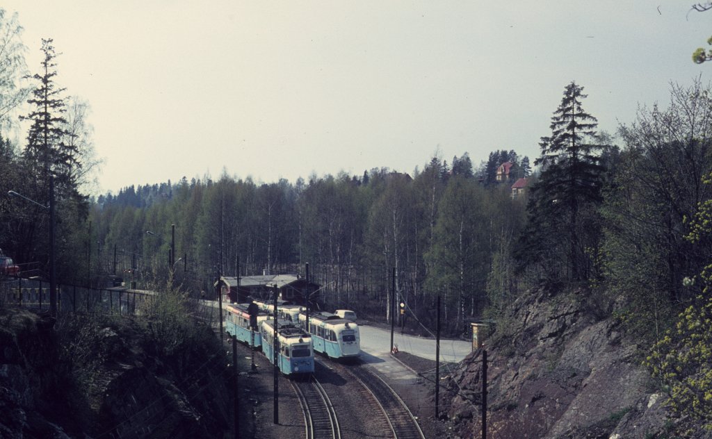 Oslo Oslo Sporveier: Zwei Züge der SL 9 treffen sich am 8. Mai 1971 in Jar.