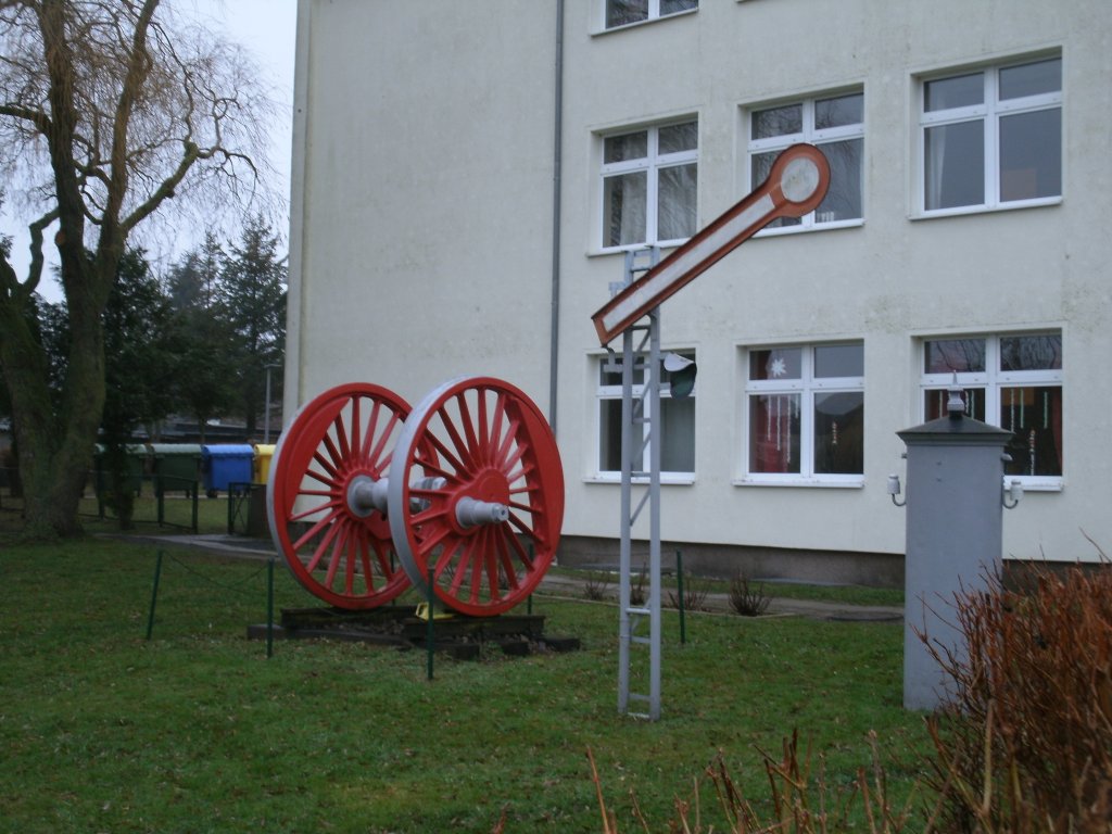 Vor der Geschwister-Scholl-Schule in Sassnitz steht Dieses Signal.In der Schule hat der Sassnitzer Modellbahnclub seine Räume.Aufgenommen am 29.Dezember 2012.