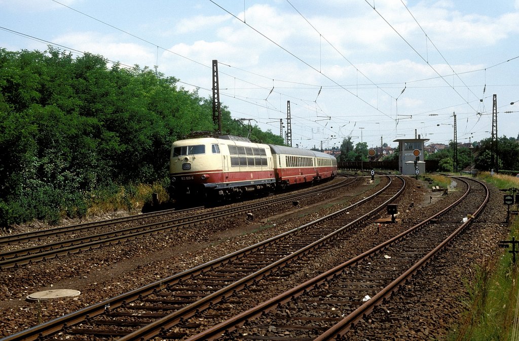 Zürich VBZ Tram 7 (Be 4/6 1603) Sternen Oerlikon / Züspa im Juli 1983.