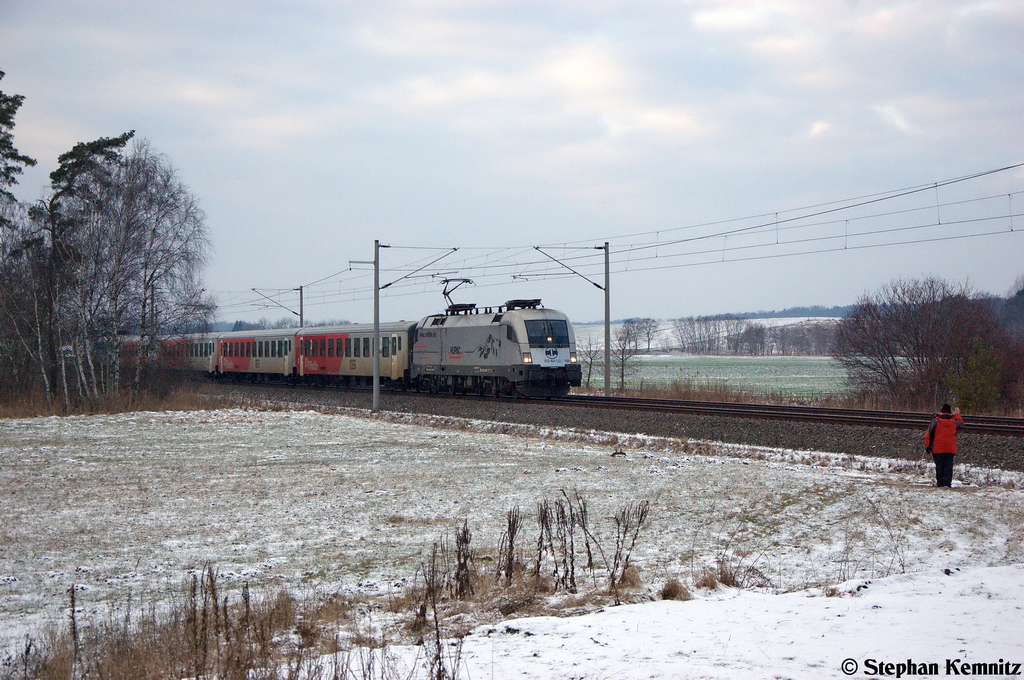 Beim zweiten Vollrübenzug am 11.1.13, welcher mit 1040 013 vom Club 1018 bespannt war, hatten wir dann auch noch Glück mit der Sonne. Die Aufnahme zeigt den zug zwischen Ziersdorf und Glaubendorf als 59115.
