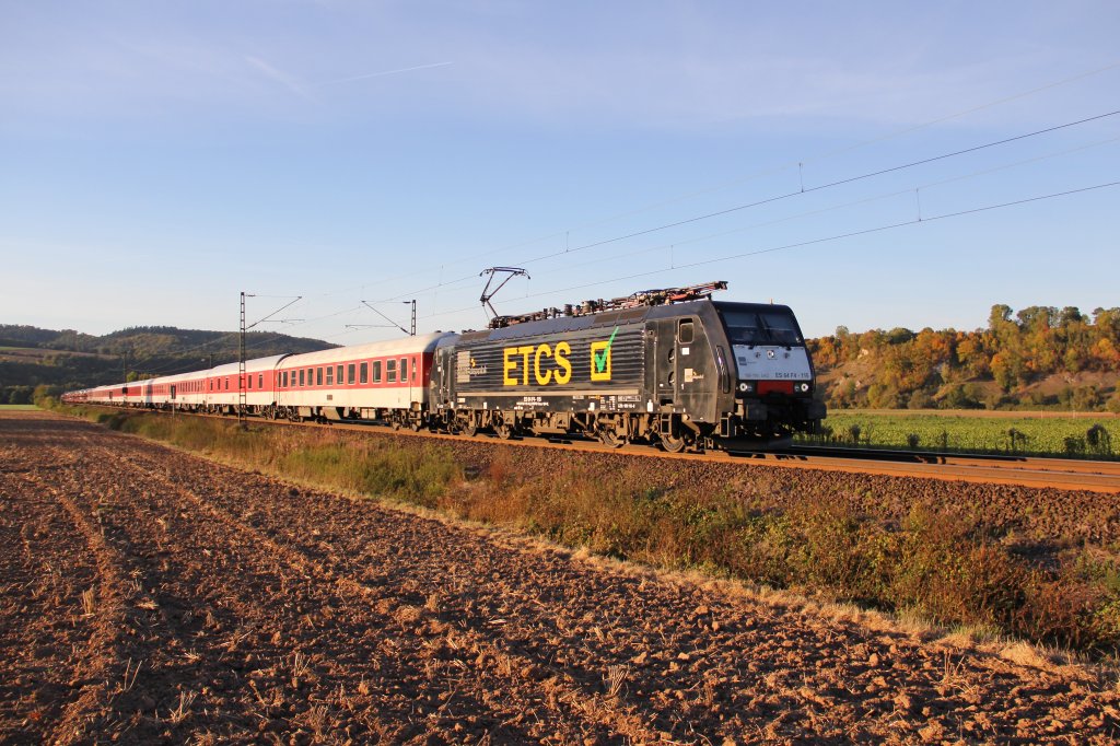 101 110-5 (Eintracht Frankfurt) steht mit dem EC 217 Saarbrücken - Graz am 12.01.2013 in Kaiserslautern