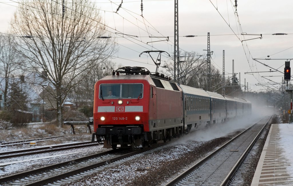 Der IC 2357 war am 12.01.13 mit 101 089 bespannt. Hier durcheilt das rollende Fotobuch Ludwigsfelde Richtung Berlin.