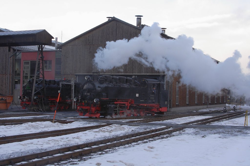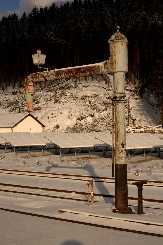 Blick auf den Bahnhof Herdorf von der Brücke Wolfsweg am 13.01.2013, die Größe aus vergangenen Zeiten kann man nur erahnen.