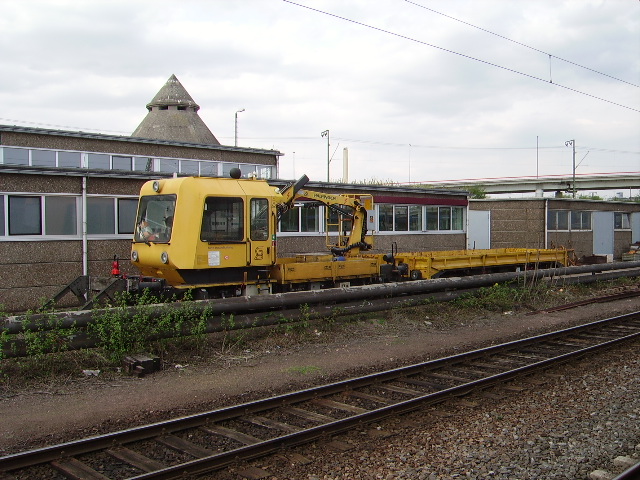 Im Vordergrund das DB-Gleis der KBS 462 - Hellertalbahn (heute eingleisig, bis Mitte der 1970er-Jahre eine zweigleisige Hauptstrecke), daran zweigt hier das Gleis (ab der Gleissperre) der KSW Kreisbahn Siegen-Wittgenstein (ehem. Siegener Kreisbahn, davor Freien Grunder Eisenbahn AG) ab.