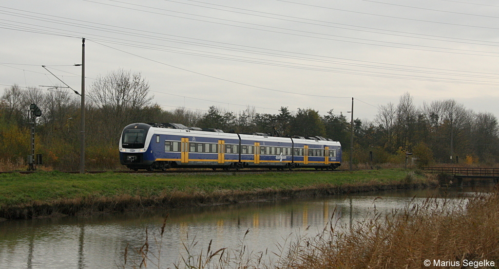 ET 440 336 ist am 10.11.12 als RS4 auf dem Weg von Bremen Hbf nach Nordenham und konnte bei Kleinensiel kurz vor der Überquerung des Wesertunnels aufgenommen werden.