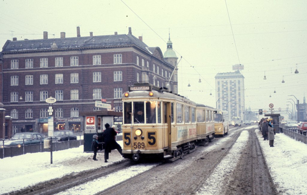 København / Kopenhagen KS SL 5 (Tw 589) Amager Boulevard / Thorshavnsgade am 13. Februar 1970.