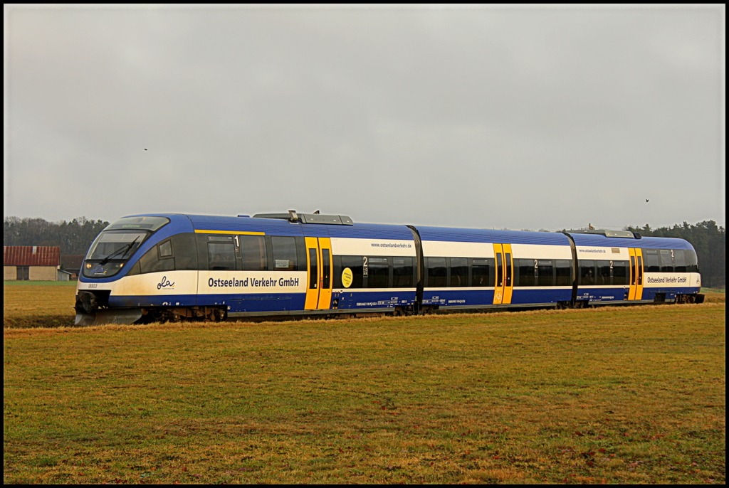 Ostseeland Verkehr GmbH VT 0003 als OLA 79802 von Ueckermünde Stadthafen nach Bützow am 07.01.13 in Torgelow