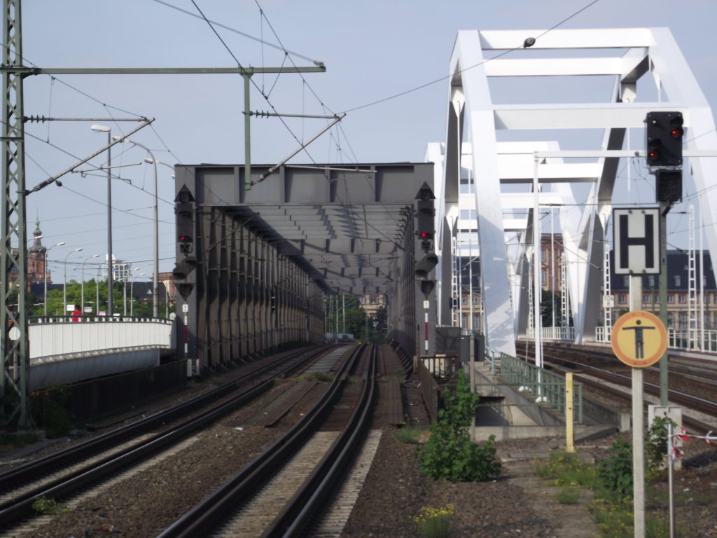 Rhein Brücke zwischen Mannheim und Ludwigshafen von Bhf Mitte aus fotografiert am 02.06.11