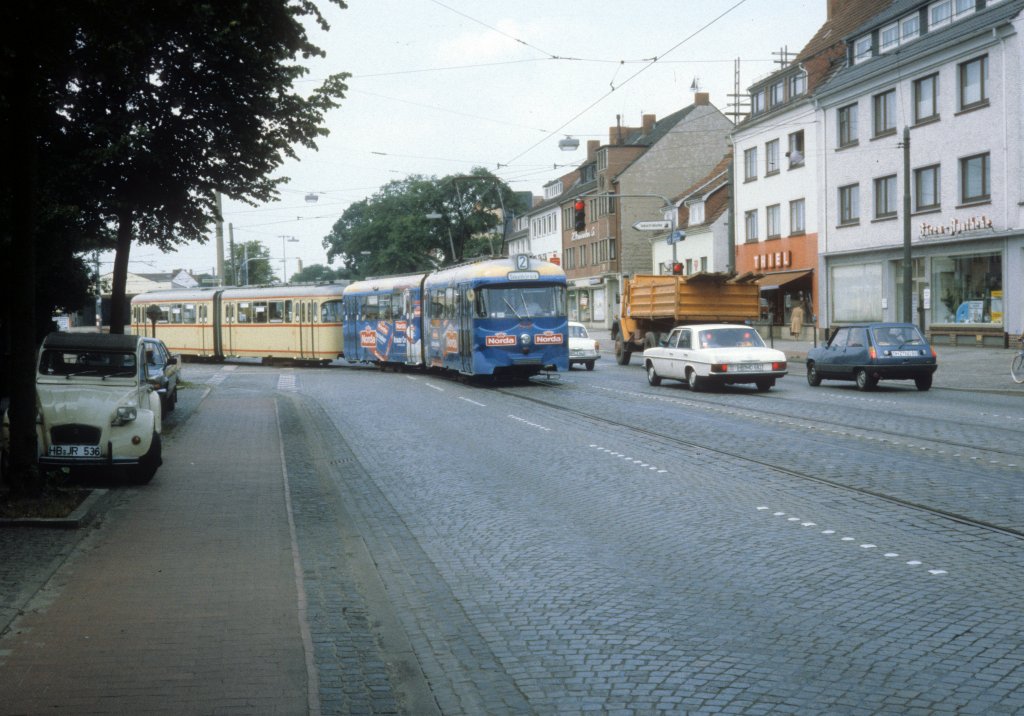 Bremen BSAG SL 2 (Hansa-GT4 456) Gröpelinger Heerstrasse am 23. Juni 1981.
