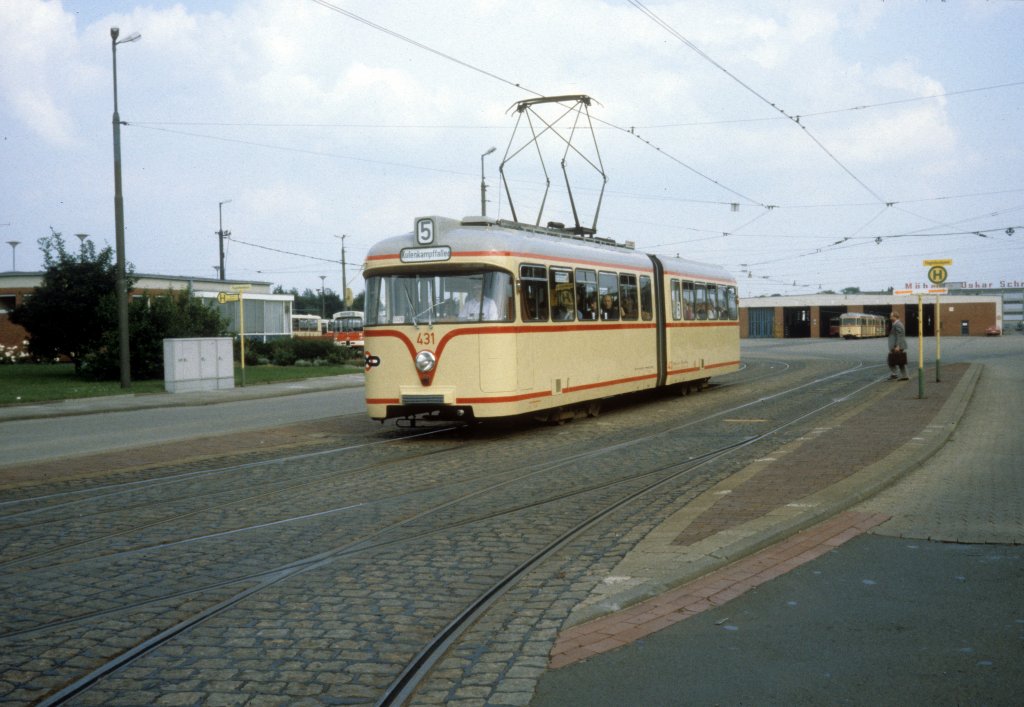 Bremen BSAG SL 5 (Hansa-GT4 431) Flughafendamm / Betriebshof am 23. Juni 1981.
