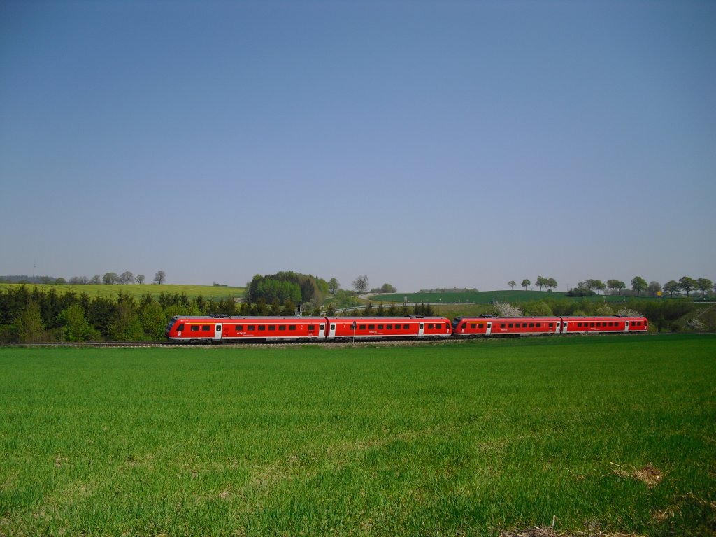 RB 38 bestehend aus zwei 628zigern am Bahnsteig in Kapellen/Erft nach Neuss unterwegs 2.3.2012
