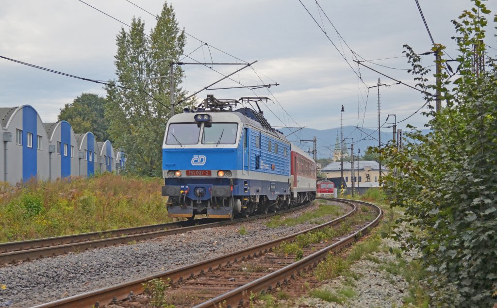 151 007-2 ČD mit Ex 148 „Hukvaldy“ („Burg Hochwald“) ´ilina/Sillein (08:27) – Čadca (SK) – Bohumín/Oderberg – Ostrava/Ostrau – Prag (13:50); 22.09.2012