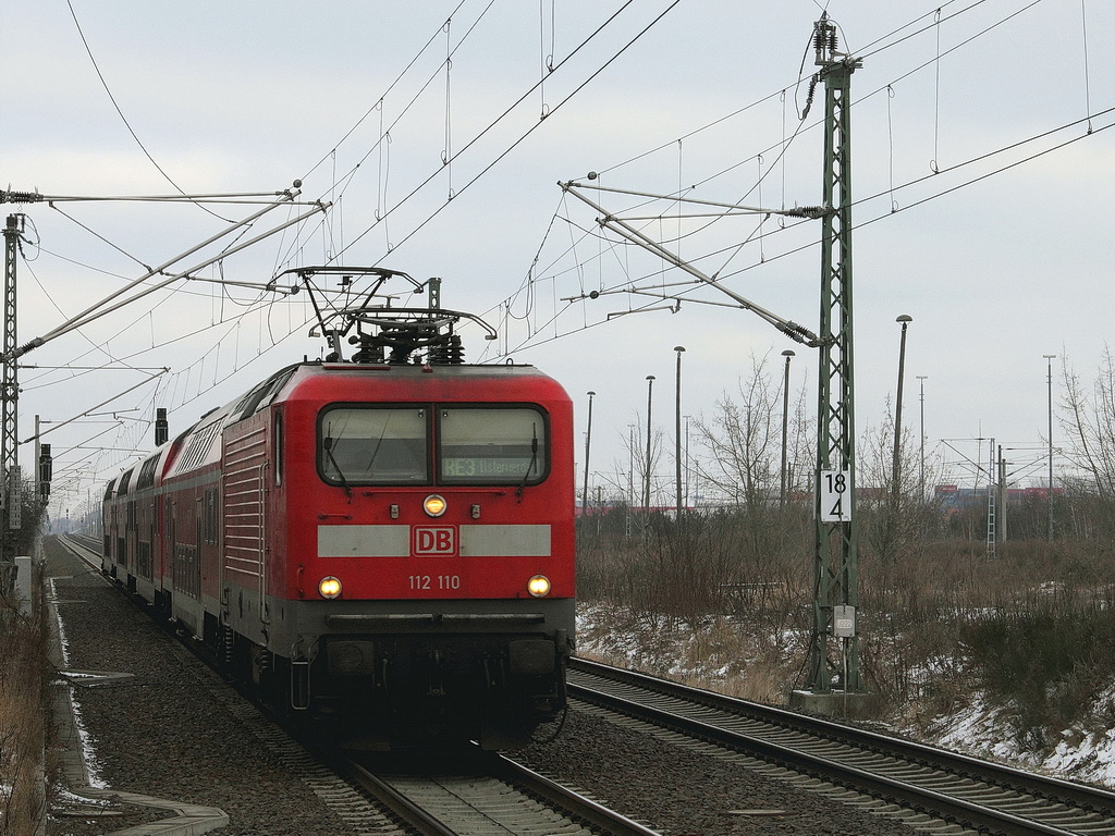 112 110 mit dem RE 3 nach Elsterwerder durchfährt am 19. Januar 2013 den Bahnhof Großbeeren.