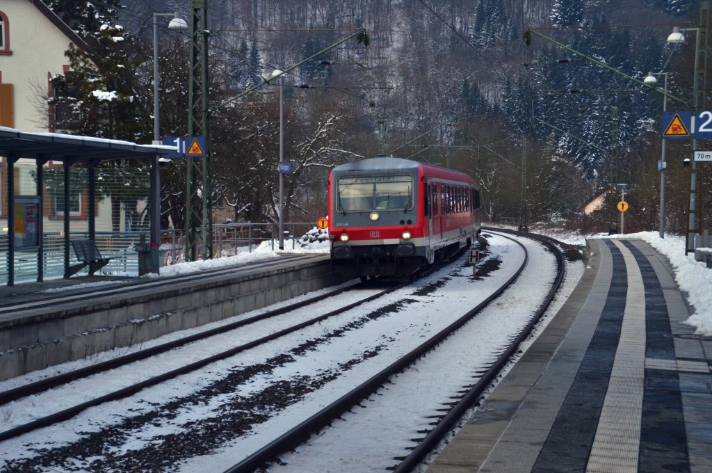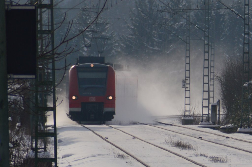 Eine Regionalbahn nach Bamberg verlässt am 13. Januar 2013 den Bahnhof Kronach.