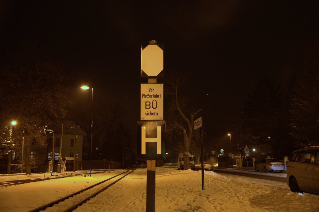 Das östliche Ende des Haltepunktes Weißes Roß in Radebeul, der Fotograf muß noch 23 Minuten auf den P 3010 nach Moritzburg warten, bei - 8 Grad C werden da schnell nicht nur die Finger kalt. 19.01.2013 gegen 17:03 Uhr