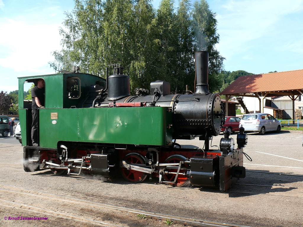 Diese Mallet-Dampflok der Bauart B'Bn4vt für 700mm Spurweite wurde 1906 von der Maschinenbau-Gesellschaft Heilbronn unter der Fabriknummer 476 für die Waldbahn gebaut. Sie ist betriebsfähig und wird regelmäßig vor den Touristenzügen eingesetzt. 2012-08-12 Abreschviller (Alberschweiler)