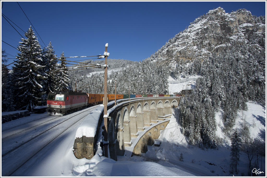 Bei traumhaften Winterwetter rollen die beiden Lokomotion 186 285 & 186 283 mit dem EKOL 41889 auf der Tauern Südrampe talwärts. Weitere wunderbare Bilder von der Tauernbahn kann man hier bewundern ... http://www.tauernbahn.at/de/index.php?section=start
