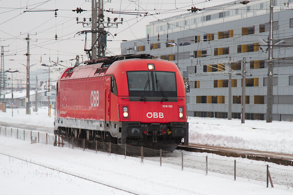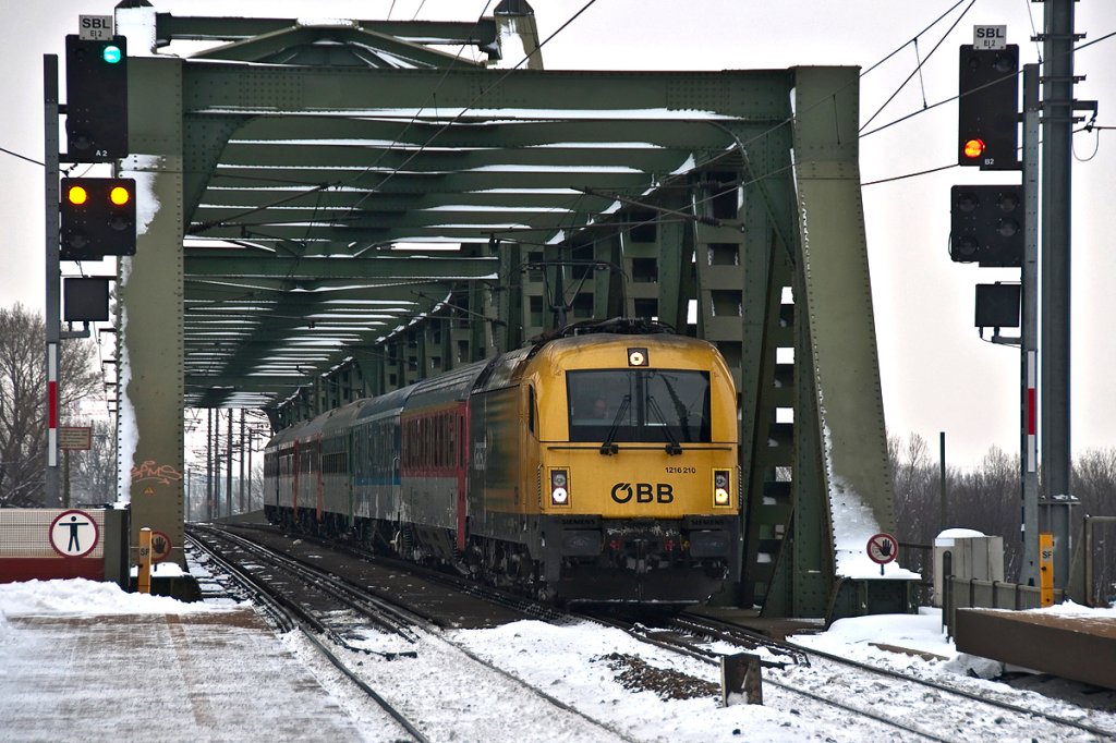 1216 210 "Kapsch" mit EC 73 am 19.01.2013 in Wien Praterkai.