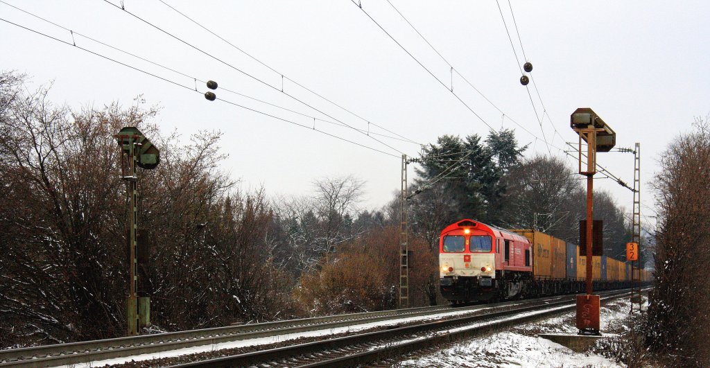 Ein Nachschuss von der Class 66 DE6302 "Federica" von Crossrail rangiert in Aachen-West bei Schnee am eiskalten 18.1.2013.