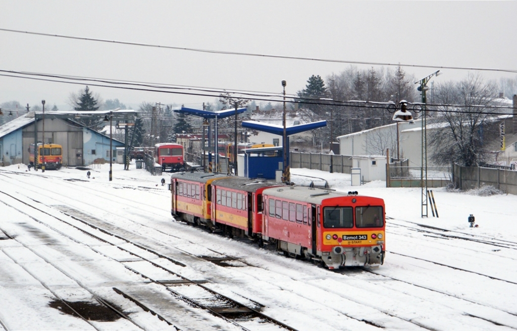 Im Dezember 1993 verlässt 228 784 mit ihrem Personenzug den Bahnhof Rennsteig