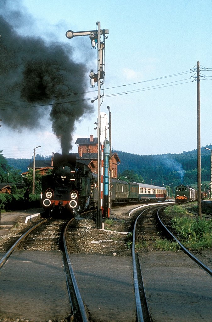 228 671 erreicht im August 1993 mit einer RB den Bahnhof Schleusingen. (Fotoscan)