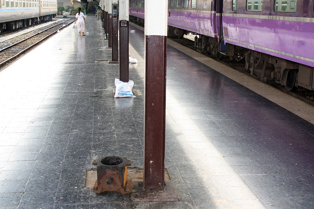 Was ein Achslagergehäuse auf dem Bahnsteig zu suchen hat, darüber grüble ich auch heute noch. Bf. Hua Lamphong am 02.November 2012.