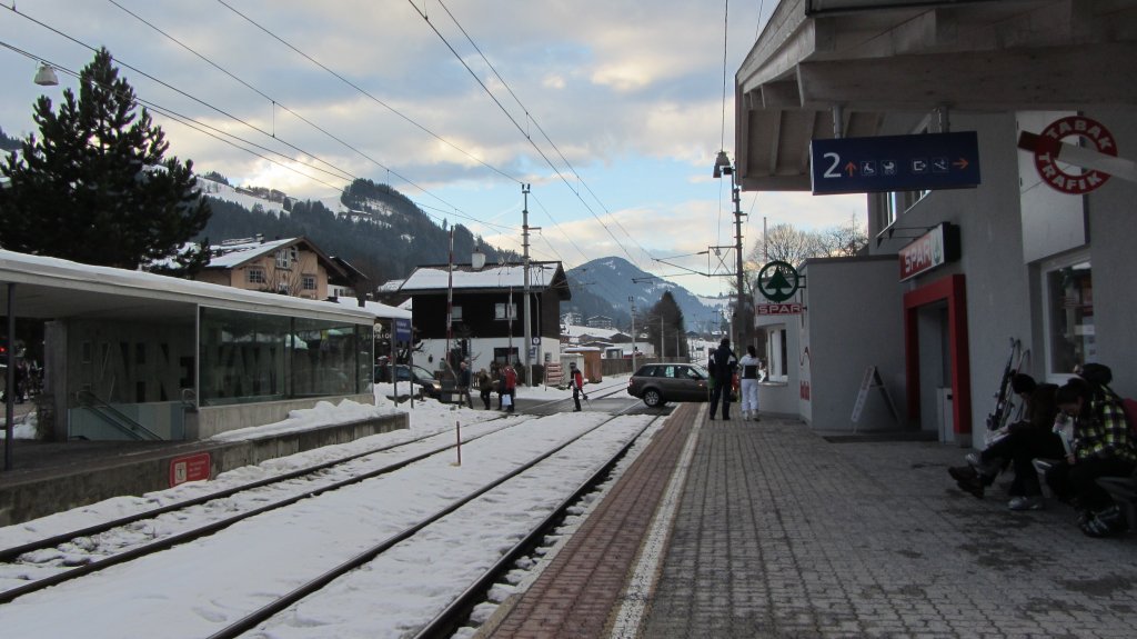 Der Bahnübergang direkt hinter dem Bahnhof Kitzbühel Hahnenkamm. Dort ereigneten sich in den letzten Jahren immer wieder Unfälle.(30.12.2012)