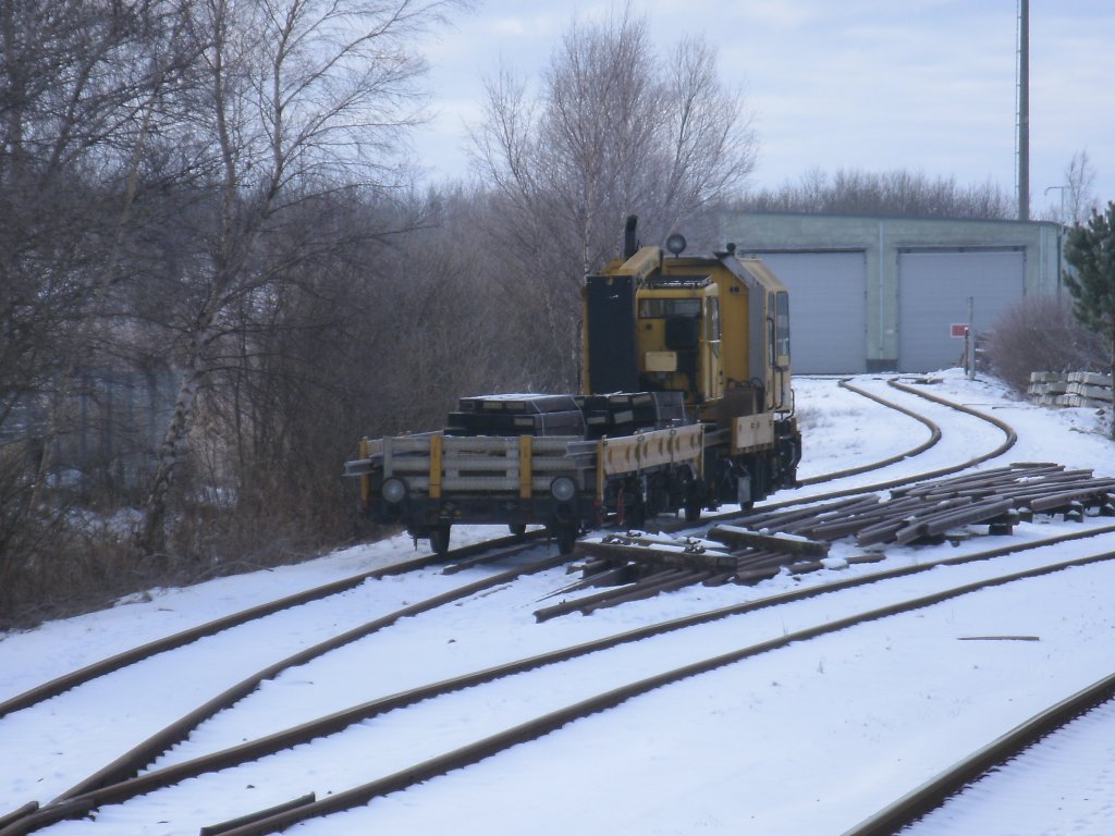 Die letzten Arbeiten vor der Wochenendruhe hatte das GAF,am 25.Januar 2013,in Bergen/Rügen erledigt,nun ging es auf dem Anschlußgleis zum,im Hintergrund,erkennen Abstellplatz.