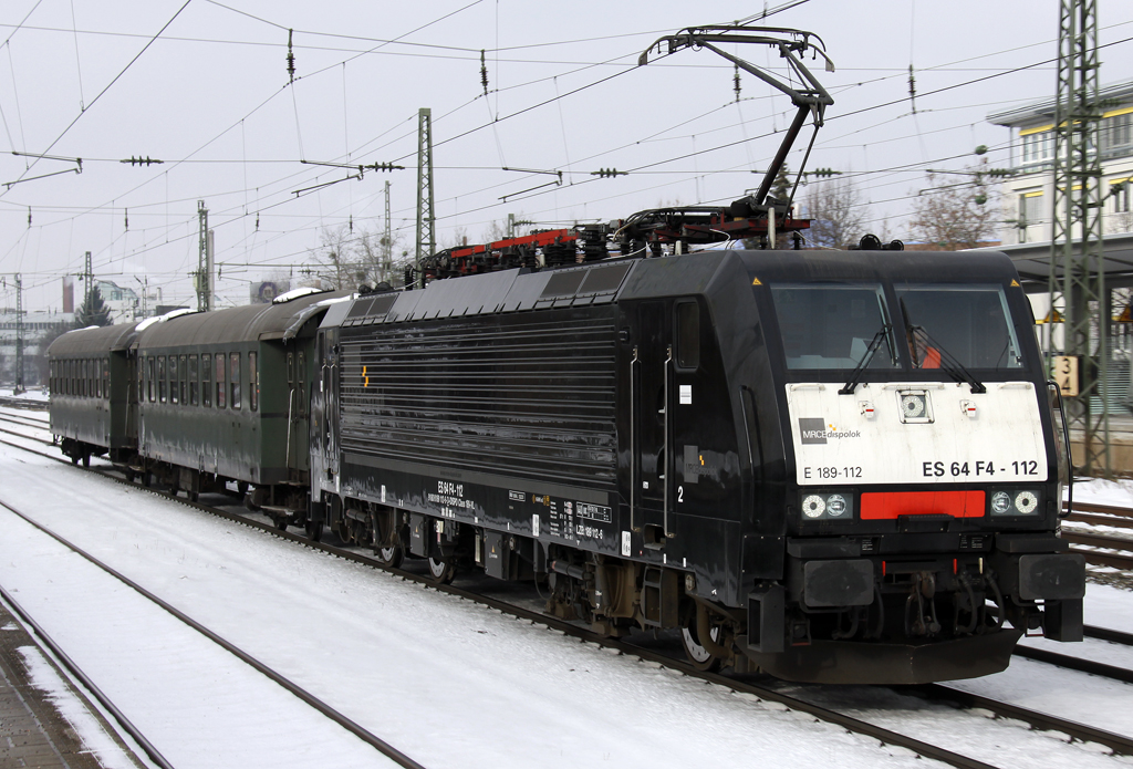 Lokomotion mit E 189 112 / ES 64 F4 112 mit einer kurzen Überführung von Pasing nach MOR in München Heimeranplatz am 26.01.2013