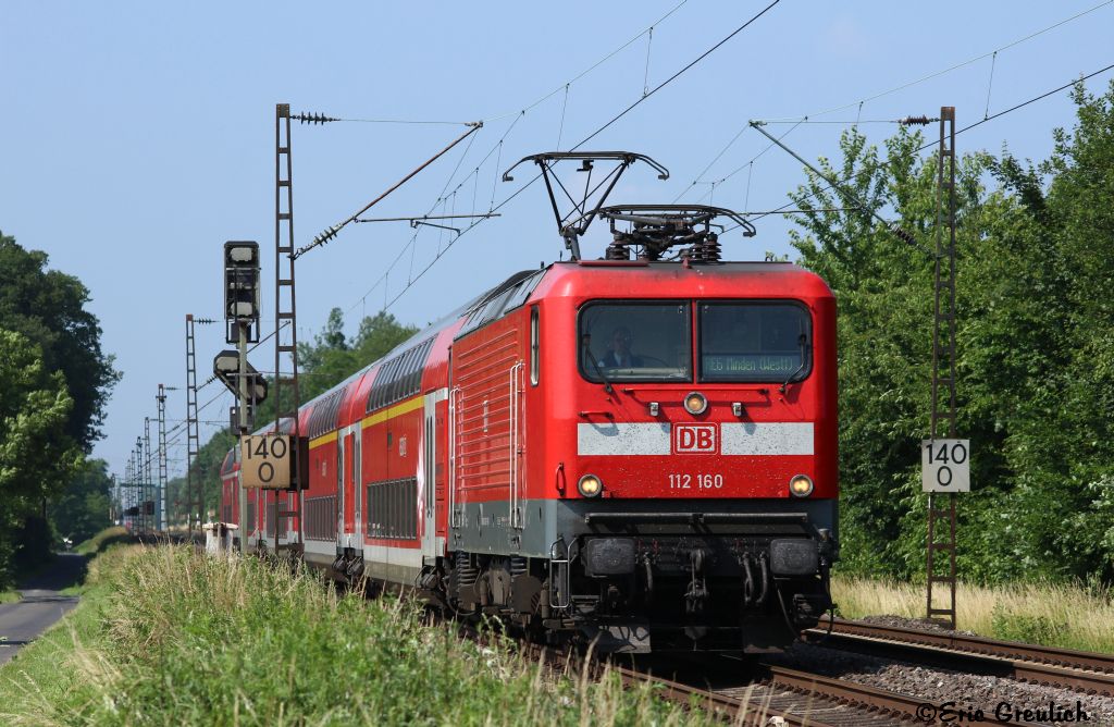 Hier 112 102-9 mit einem RE5 (RE4357) von Rostock Hbf. nach Lutherstadt Wittenberg, bei der Einfahrt am 27.6.2013 in Berlin Gesundbrunnen.