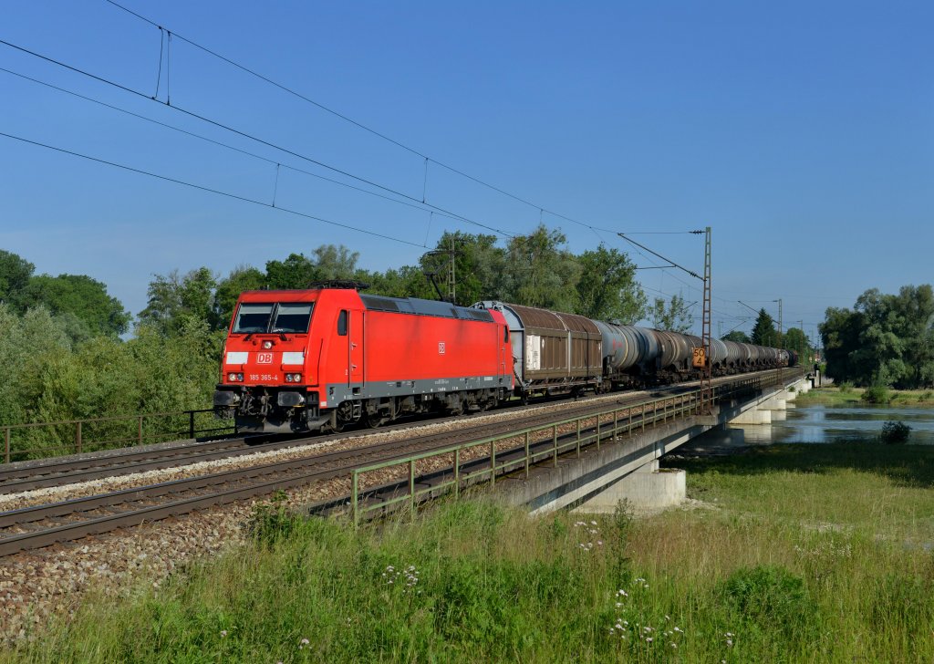 1116 067 ist mit einem Kesselwagenganzug Richtung Westen unterwegs. Die Aufnahme entstand am 10.07.2013 kurz vor Unter Oberndorf, Richtung Westen.
