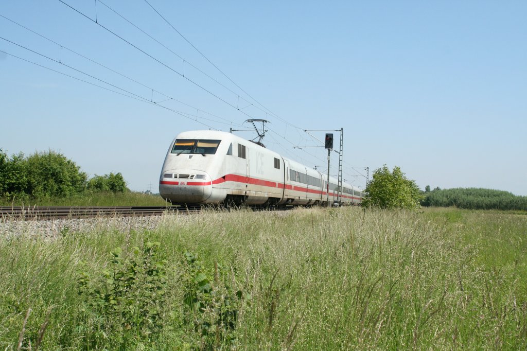 401 074-0 war am Vormittag des 06.06.13 von Interlaken Ost nach Berlin Ostbahnhof unterwegs. Hier ist der mit der Zugnummer 370 gekennzeichnete Zug südlich von Buggingen zu sehen.