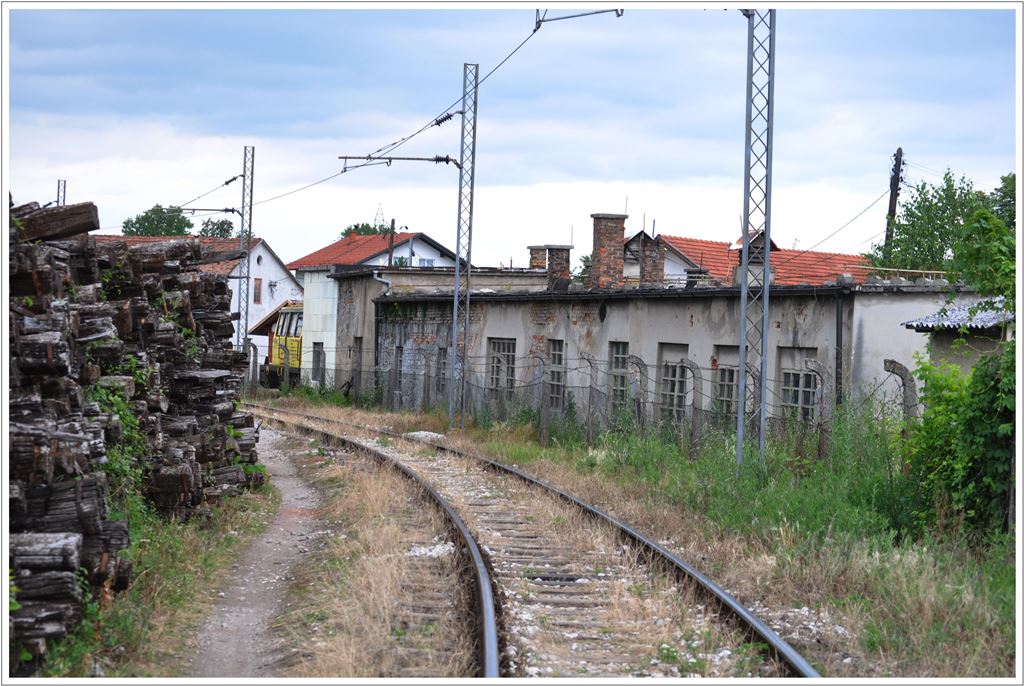An der Zufahrt zum Lokdepot Bihać hängt sogar noch die Fahrleitung, die auf der Strecke schon vielerorts entfernt wurde. (28.06.2013)