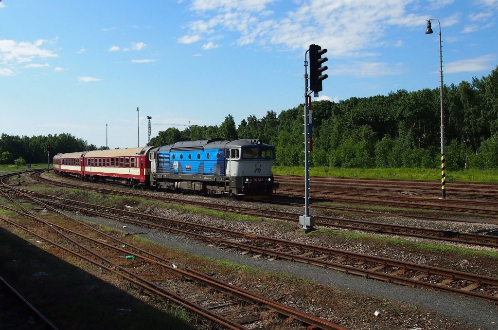 CD 750 706-4 mit einem Schnellzug aus Prag nach Rakovnik auf dem Bahnhof Kladno am 22. 6. 2013.