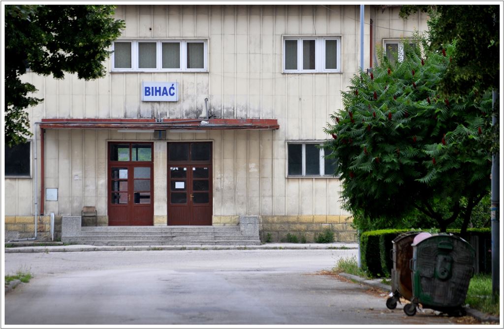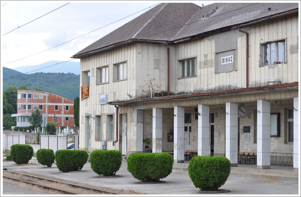 Die verwaiste Bahnhofstrasse zum verlassenen Bahnhof von Bihać. Die Stadt zählt etwa 70000 Einwohner und trotzdem wurde der Personenverkehr nach Bosanski Novi eingestellt. Nach Knin durchs Unatal gibt's seit 1991 keinen Verkehr mehr, nur noch bescheidener Güterverkehr bis Martin Brod. (28.06.2013)