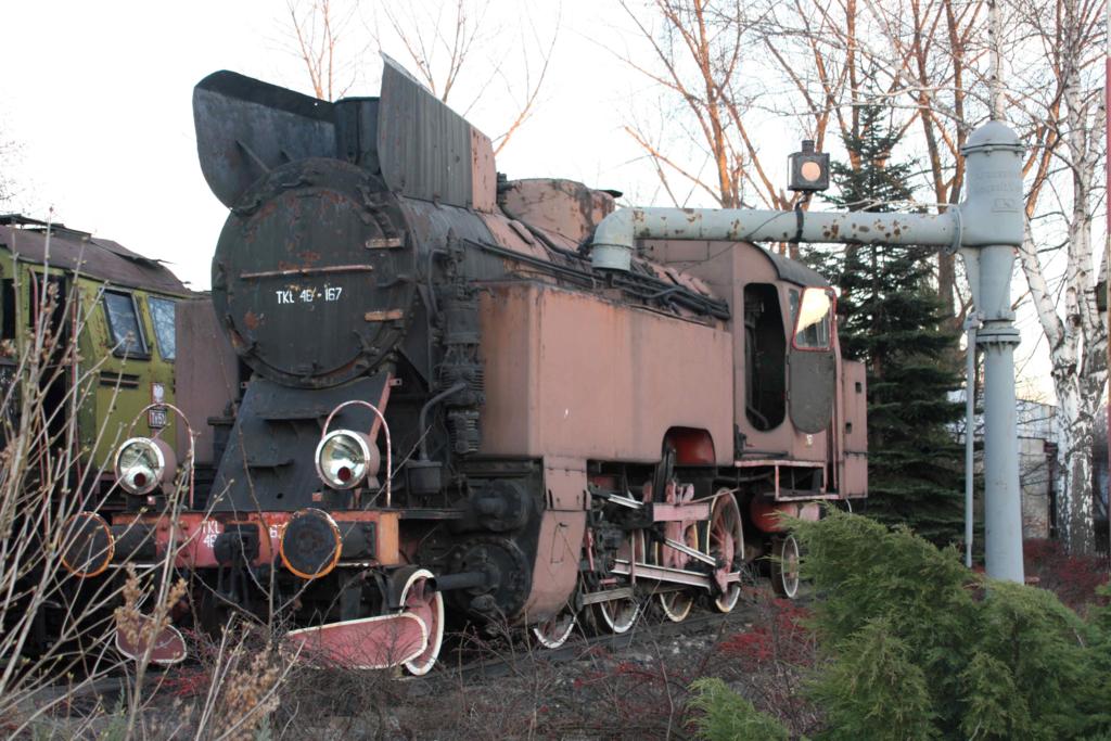 Eigentlich ein schönes Denkmal: Dampflok TKT 48-267 mit altem Wasserkran.