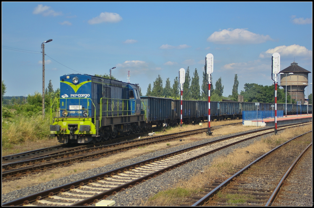 PKPC SM31-130 / 8 620 060 holte am 09.07.2013 einen langen Zug Eaos-Wagen vom oberen Rangierbahnhof um ihn dann über das Verbindungsgleis auf den unteren Rangierbahnhof von Kostrzyn zu verschieben.