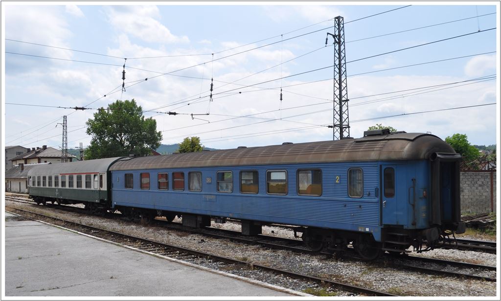 Zwei Personenwagen der ZRS ex SJ und DR in Bosanski Novi. (28.06.2013)