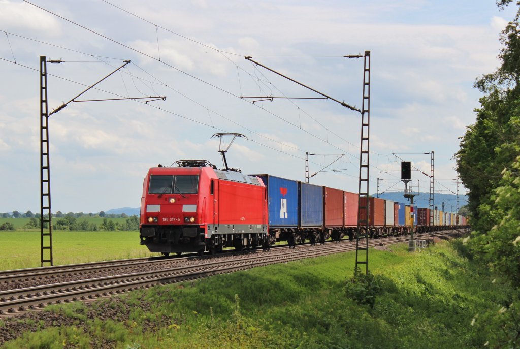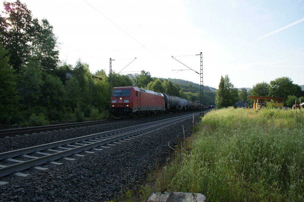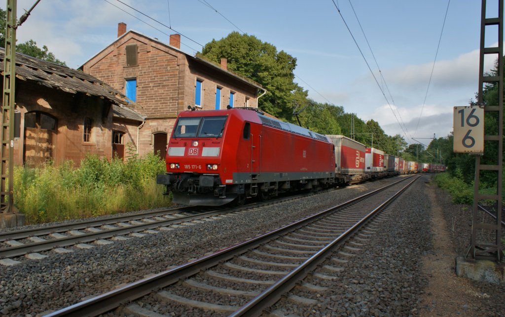185 171-6 vor dem leeren Bahnhof von Vollmerz am 11.07.13.