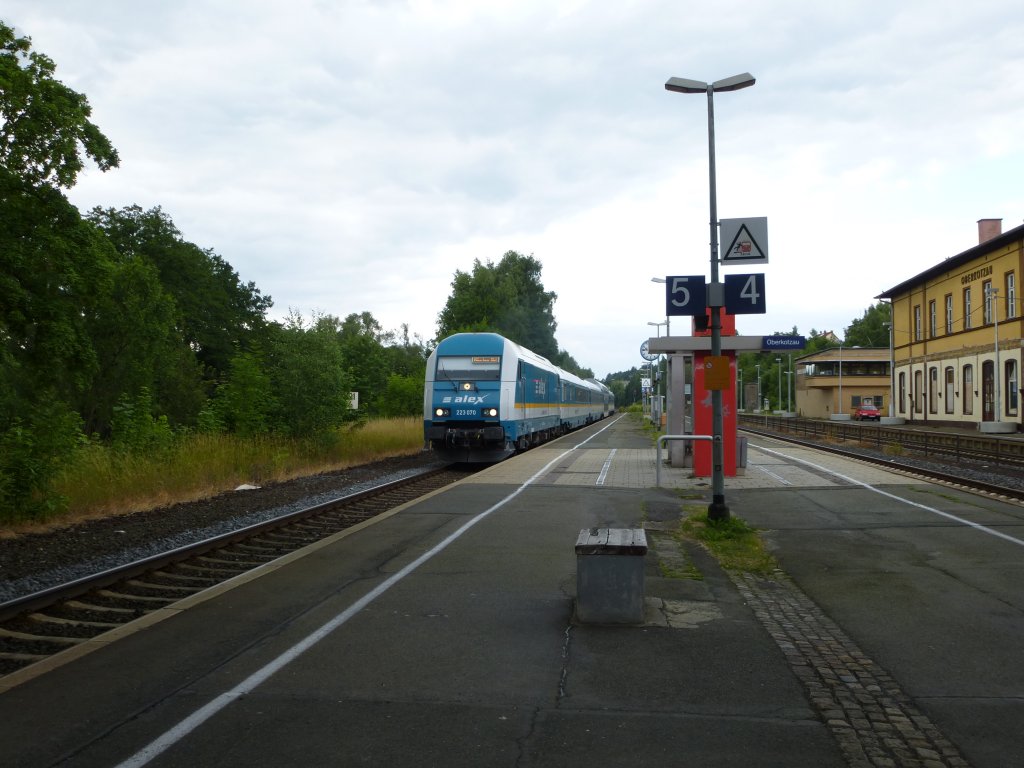 Der VT 650.701 fährt hier am 7.Juli 2013 in den Bahnhof von oberkotzau ein. Seine Fahrt wird in Münchberg enden.