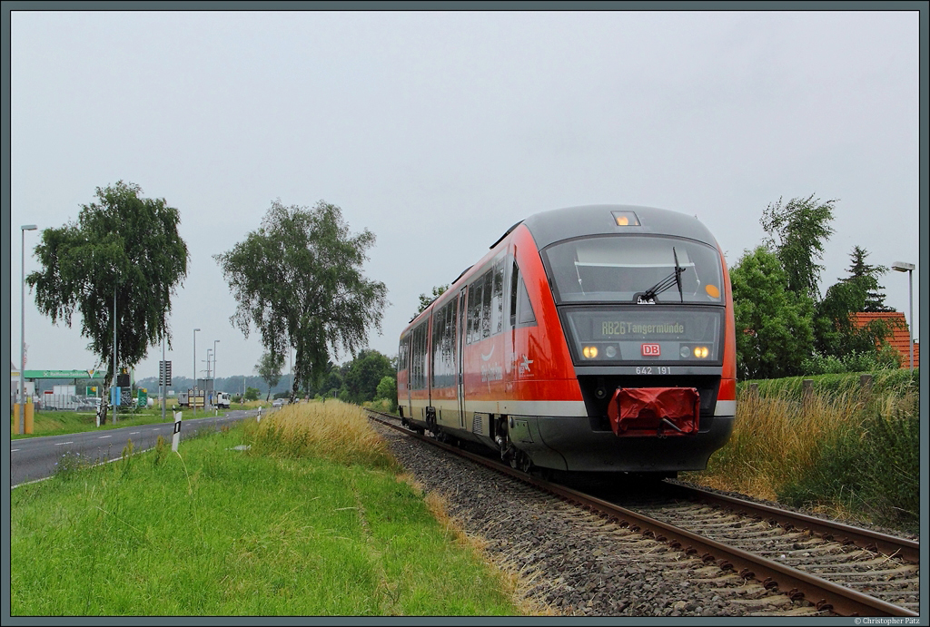 642 191 rollt am 05.07.2013 bei Tangermünde West als RB 27815 Richtung Streckenendpunkt.